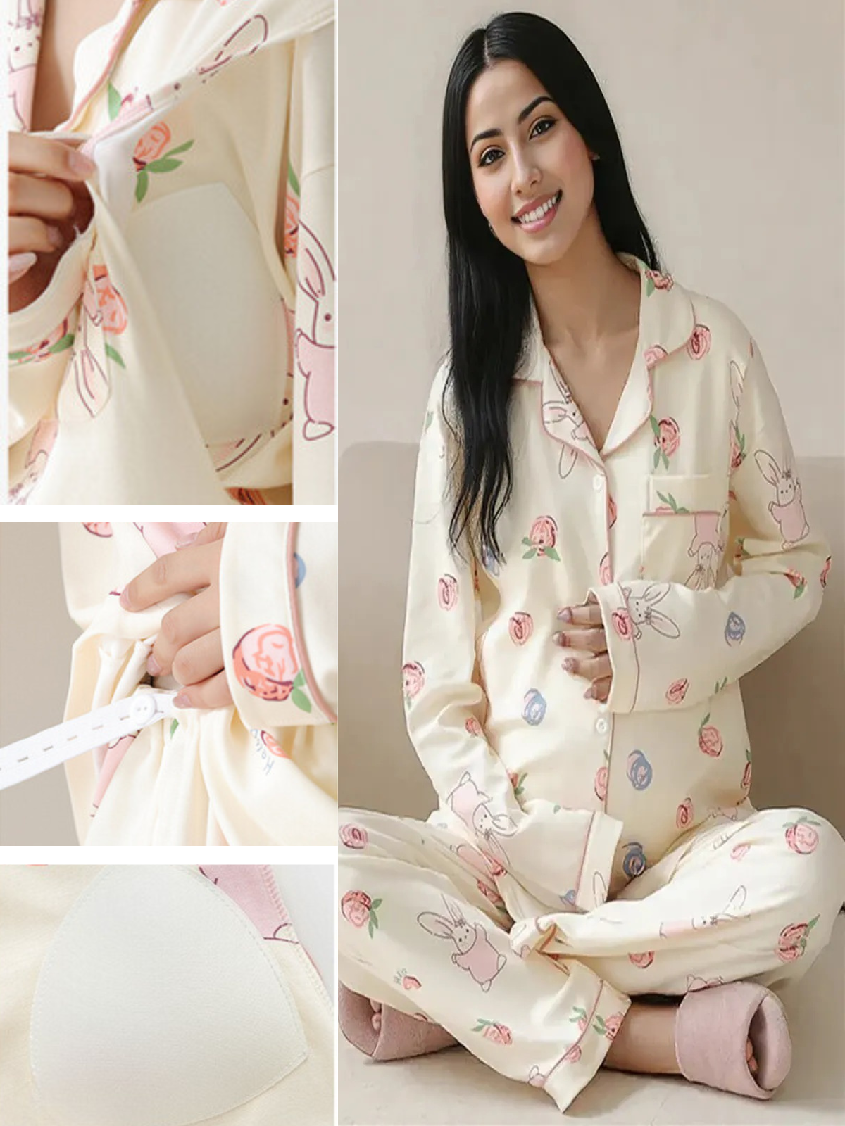 Draped in creamy tones and dotted with heart-shaped buttons, this pajama set is your cozy love note. Soft, romantic, and sneakily supportive, it hides a touch of padded magic beneath its adorable surface. 💘