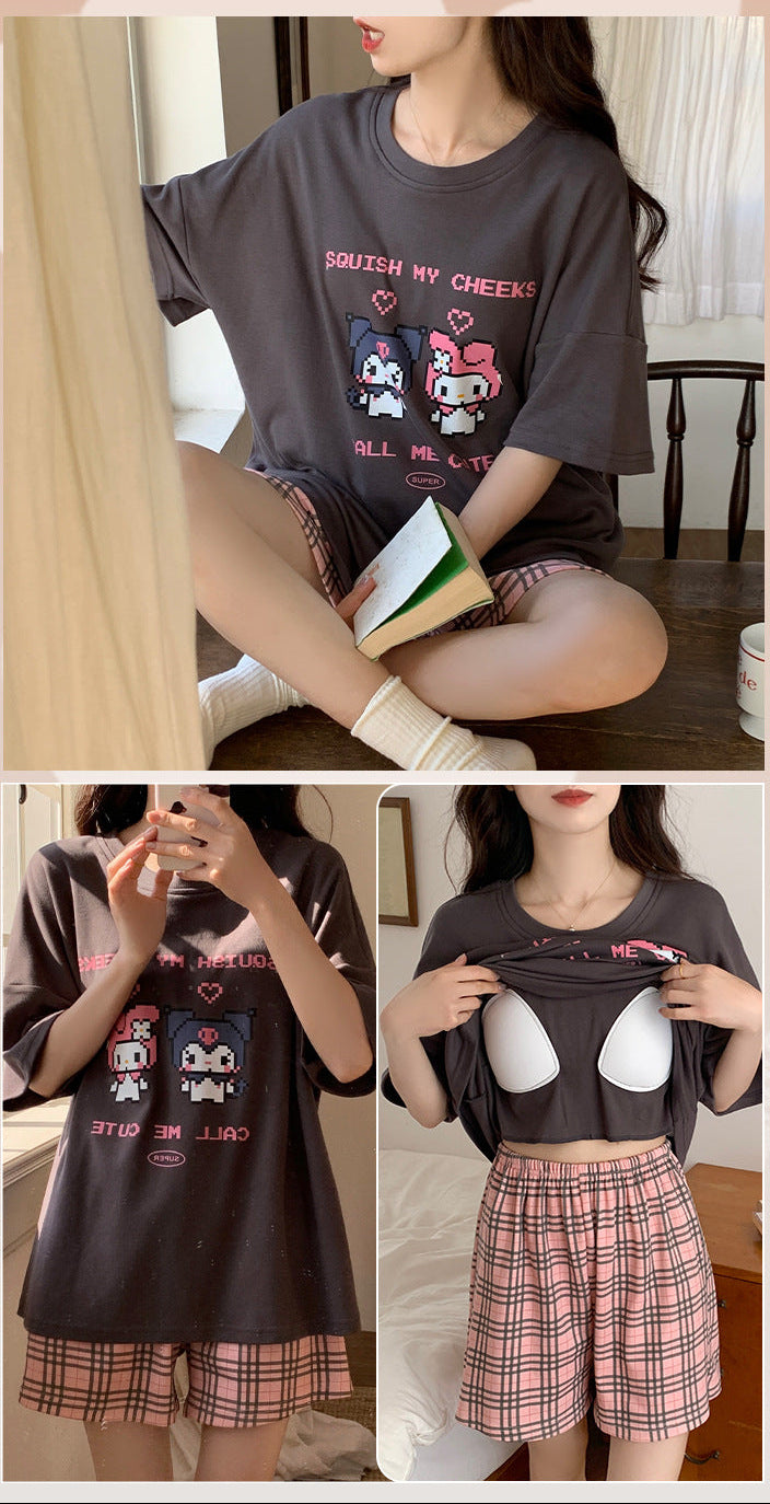 Draped in creamy tones and dotted with heart-shaped buttons, this pajama set is your cozy love note. Soft, romantic, and sneakily supportive, it hides a touch of padded magic beneath its adorable surface. 💘